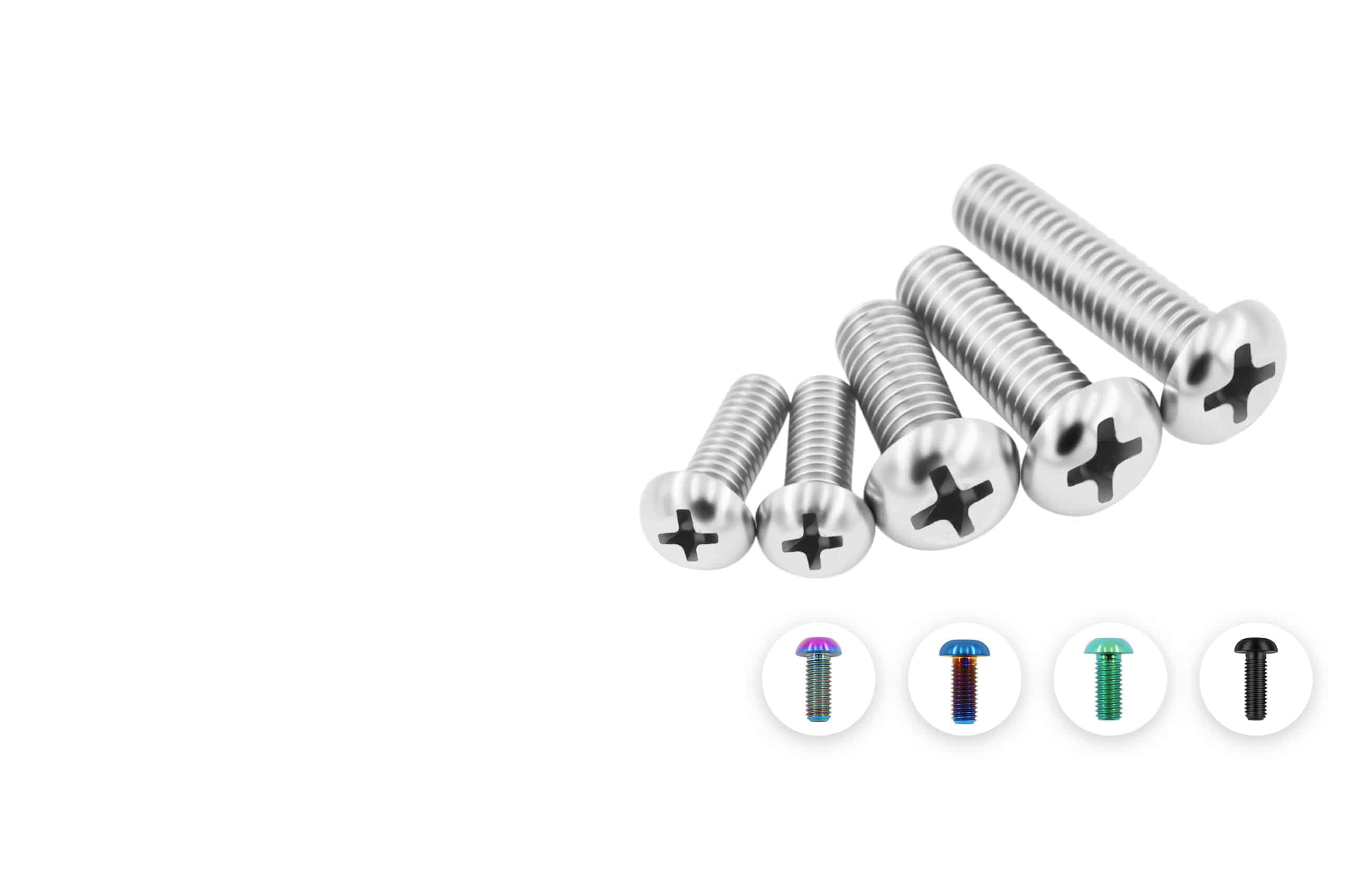 TRT provides metric button Philips ti-bolt from M3 to M6 with different length. In order to satisfy various applications, especially in bicycle, motorcycle, sporting devices.