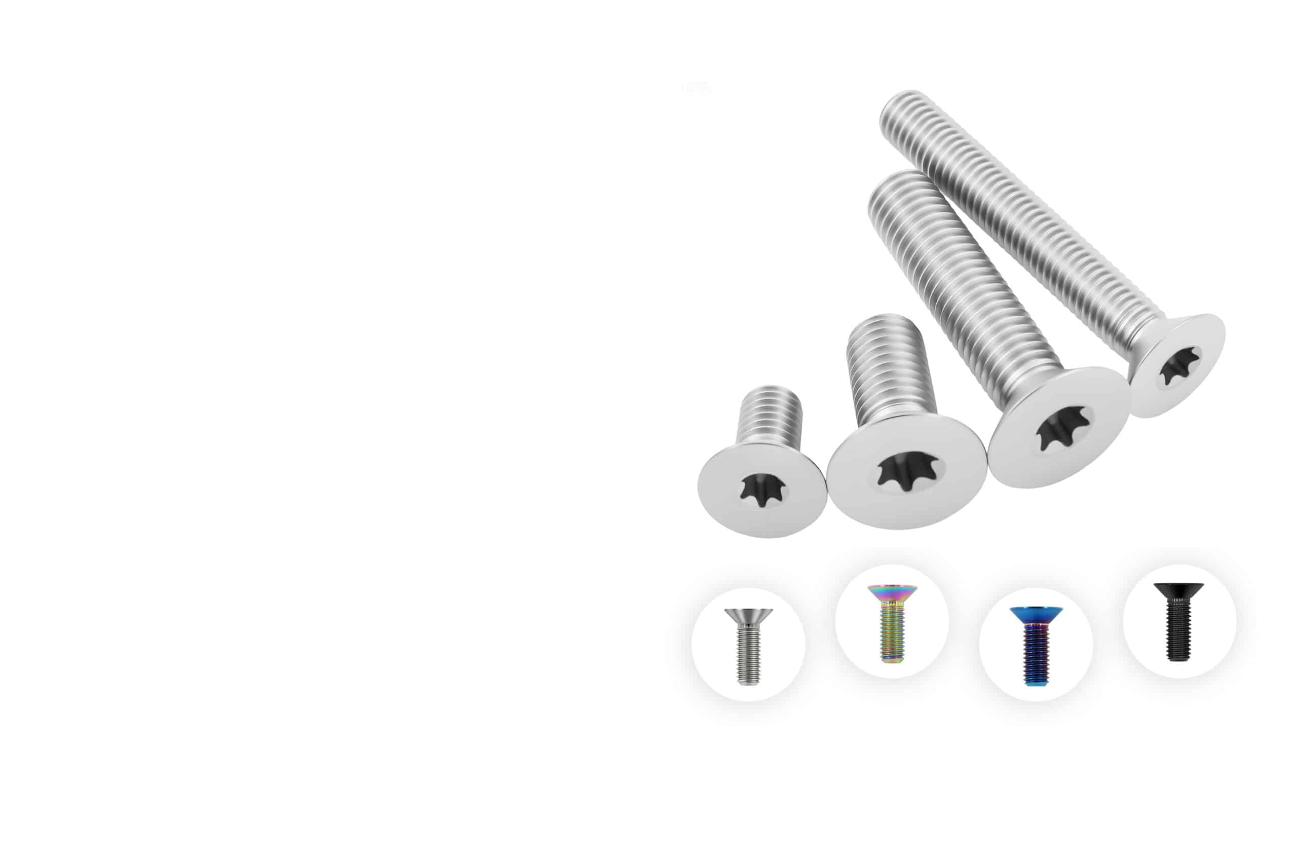 Our flat torx titanium bolts in stock are in the following sizes: